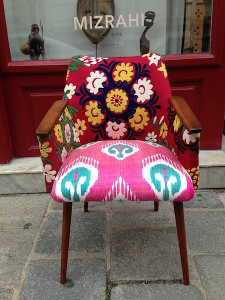 SOLD -Vintage Club Chair-1960`s- Suzani with IkatBackside with coffee bean bag ![]() |